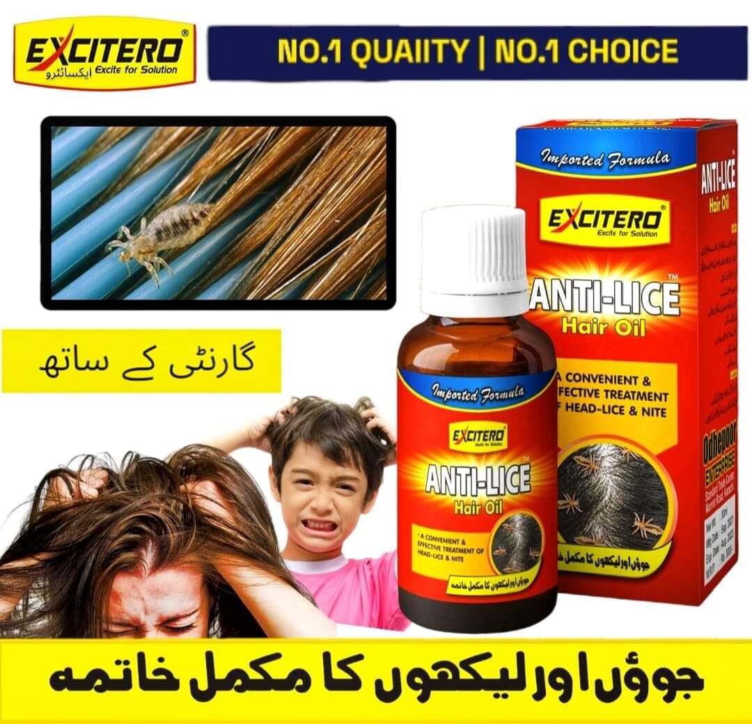 ایکسیٹیرو اینٹی ہیئر لائس آئل استعمال کرنے سے جوئیں اور لکھیں بلکل ختم ہو جاتی ہیں.۔ اس آئل کے استعمال کرنے کے 2 گھنٹے کی بعد لازمی باریک کنگی سے بالوں کو بنائیں۔۔ اس آئل کے استعمال کرنے سے بالوں میں جوئیں اور لکھیں بلکل ختم ہو جائیں گی..